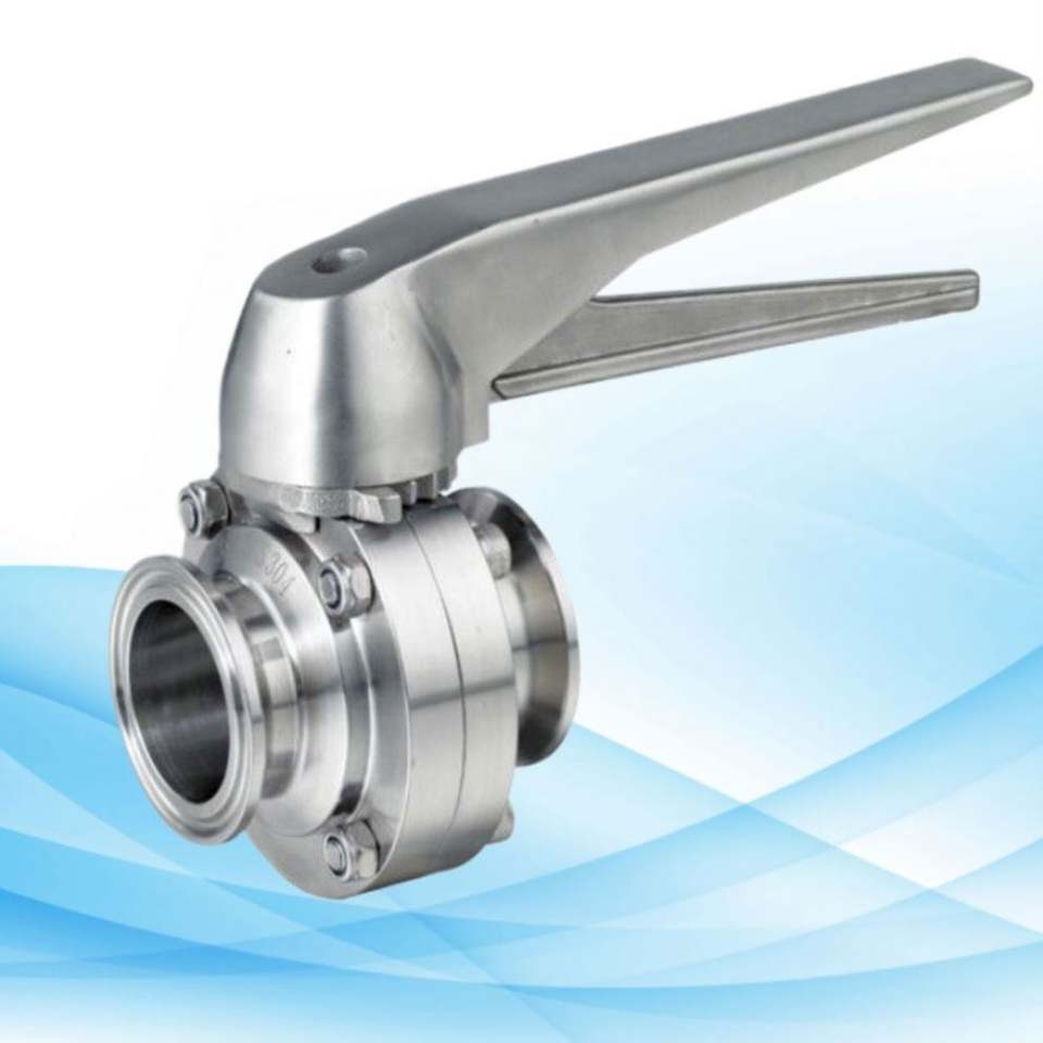 วาล์วผีเสื้อ DN200อุณหภูมิสูงแบบแมนนวลสำหรับที่ทำจากผง SS-Tri-Clamp สำหรับน้ำที่มีอุณหภูมิสูง
