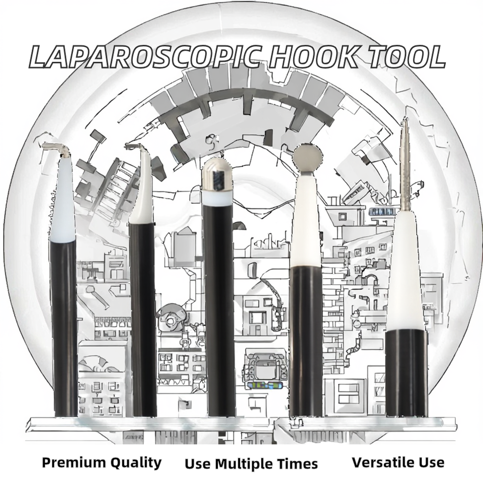 เครื่องมือผ่าตัดผ่านกล้องแบบแมนนวล ตะขอรูปตัว L สำหรับขูดและเกี่ยว พร้อมเข็มไฟฟ้า ใบมีด เหล็กกล้า ขนาด 5*330 มม.