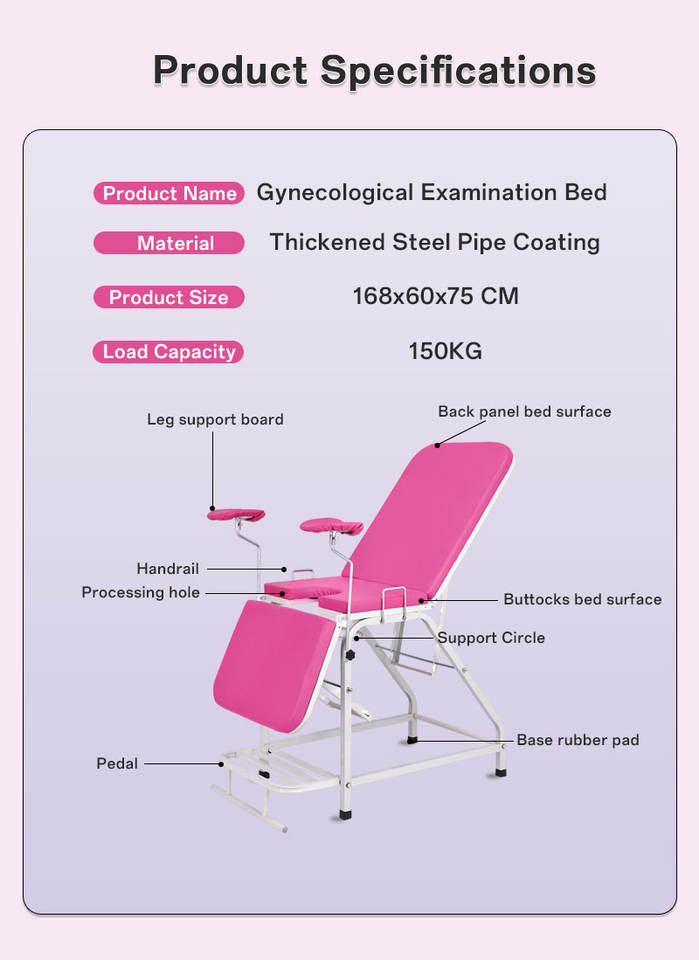 เก้าอี้ตรวจภายในแบบปรับได้สำหรับนรีเวชวิทยา ทำจากสแตนเลส ใช้เป็นเตียงคลอดบุตรและโต๊ะตรวจทางการแพทย์