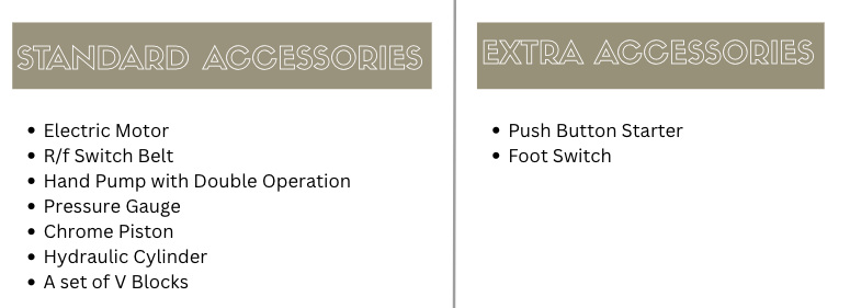 แบริ่ง, ปั๊มมือแบบใช้งานสองระบบ, เกจวัดแรงดัน, ลูกสูบโครเมียม, กระบอกไฮดรอลิก
