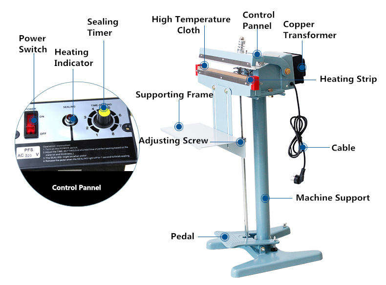 เครื่องซีลถุงแบบเท้าเหยียบ ความยาวการซีล 1000 มม. สำหรับถุงพลาสติกและฟิล์ม
