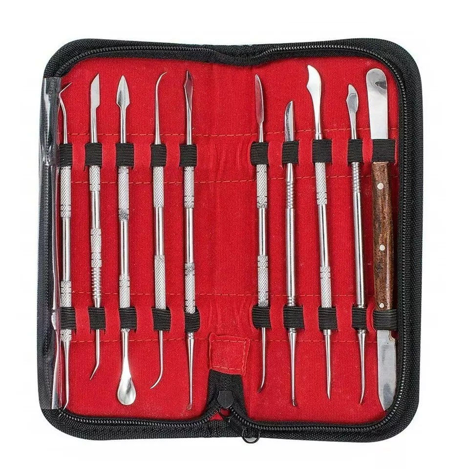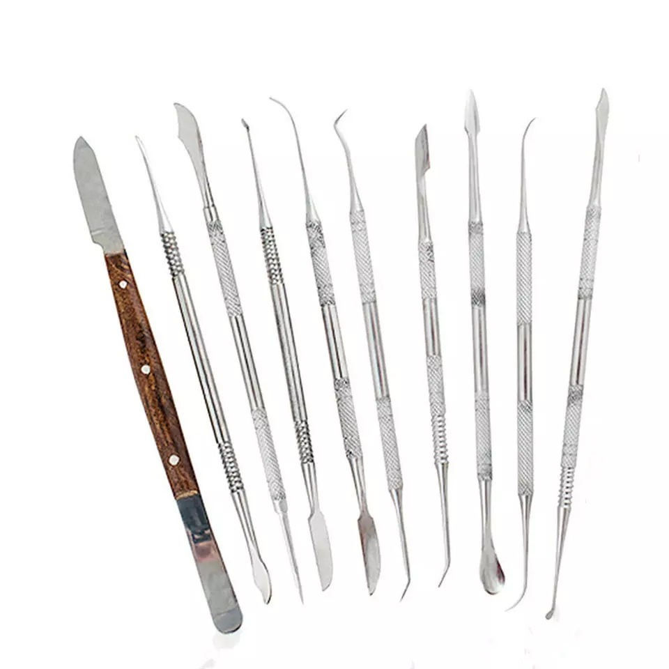 ชุดเครื่องมือแกะสลักขี้ผึ้งทางทันตกรรมสแตนเลสแบบแมนนวล 10 ชิ้น ด้ามจับตามหลักสรีรศาสตร์ อุปกรณ์ผ่าตัดสำหรับทันตแพทย์ Dogamatic