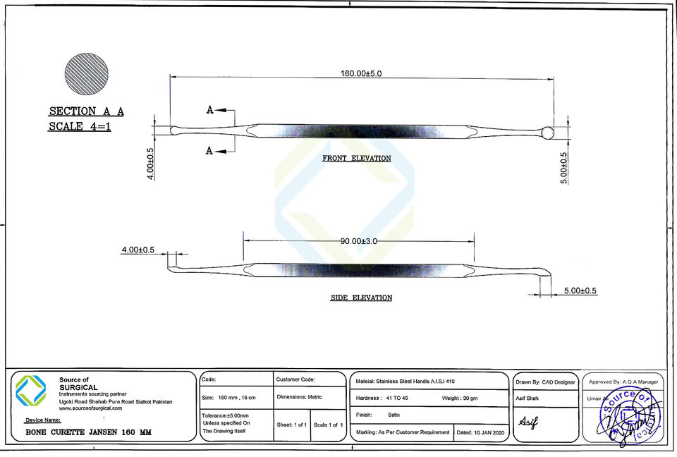 ที่ขูดกระดูกแบบแมนนวลและสเตนเลสสตีลสำหรับรักษากระดูก