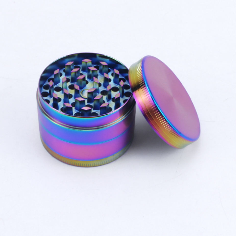 เครื่องบดโลหะสังกะสีอัลลอย4ชั้นขนาดเส้นผ่าศูนย์กลาง40มม. สีรุ้งแบบแมนนวลสำหรับสมุนไพรแห้ง