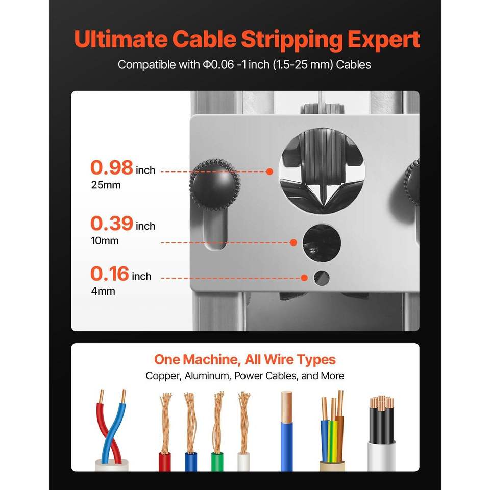 เครื่องปอกสายไฟแบบมือหมุน ขนาด 0.06-1 นิ้ว สำหรับทองแดง ใช้กับสว่านมือหรือเครื่องเจาะ วัสดุ 64Mn ชุบแข็ง สำหรับรีไซเคิลเศษโลหะ