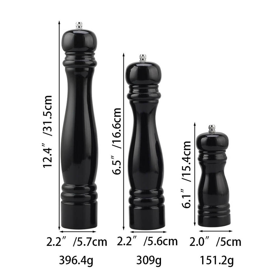 ชุดเครื่องบดเกลือและพริกไทยทำจากไม้แกนเซรามิกไม้โอ๊กมี3ขนาดและสีดำแบบแมนนวล