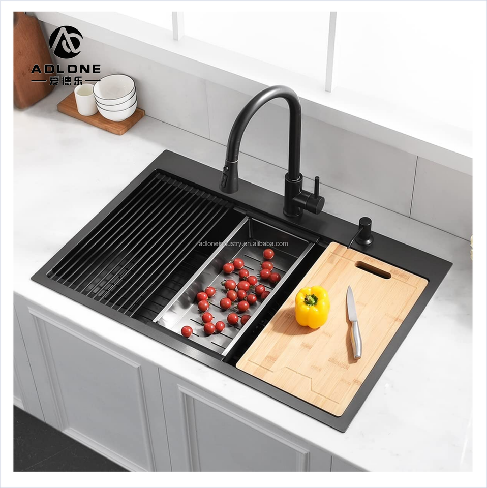 Manufaceturers กำหนดเองซักรีด, 16/18กรัม Ss304ใต้มุมนาโนอ่างล้างจานทำด้วยมือสีดำชามเดียว pileta cocina, fregadero