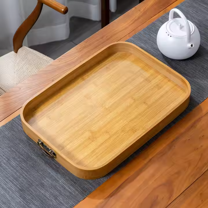 ถาดอาหารทรงสี่เหลี่ยมผืนผ้าทำมือ งานฝีมือ ผลิตจากโรงงาน ขายส่ง ลายดอกไม้ ผิวขัดเงา สำหรับใส่ผลไม้-ครีสเซนต์ คราฟต์