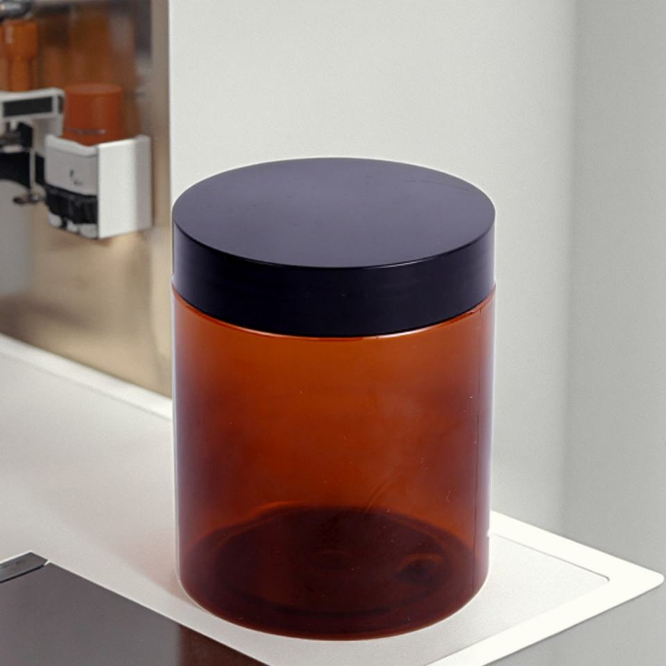 ผลิตบรรจุภัณฑ์เครื่องสำอางขนาด 250 มล. 8 ออนซ์ 500 มล. 16 ออนซ์ ขวดครีมพลาสติก PET สีใส สีเหลืองอำพัน สีดำ พร้อมฝาพลาสติก
