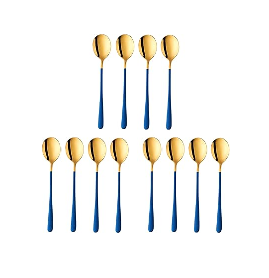 ชุดช้อนส้อมสีทองสำหรับร้านอาหารเครื่องใช้บนโต๊ะอาหารสีทองทำจากทองเหลืองมีด้ามจับเคลือบสีฟ้า
