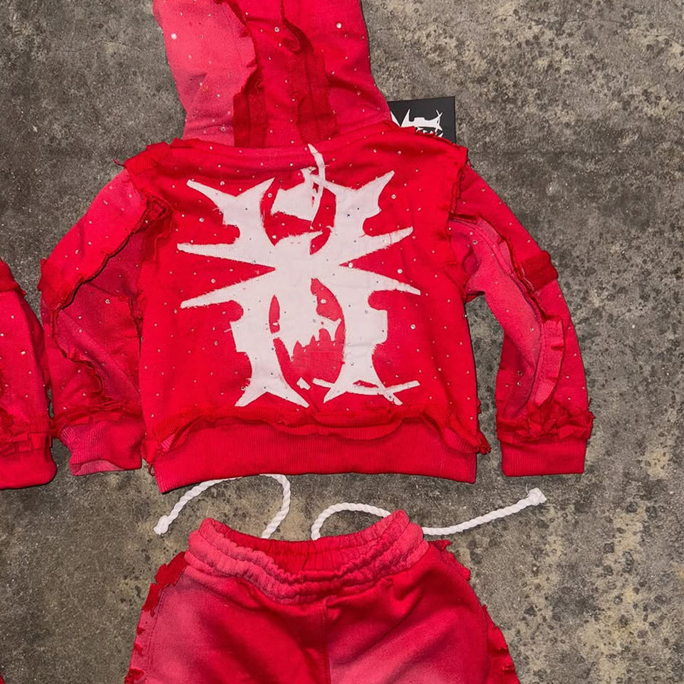 เสื้อมีฮู้ดแบบซิปรูดของผู้ชายเสื้อครอปประดับพลอยเทียมเฟรนซ์ฟอกกรดแบบกำหนดเอง