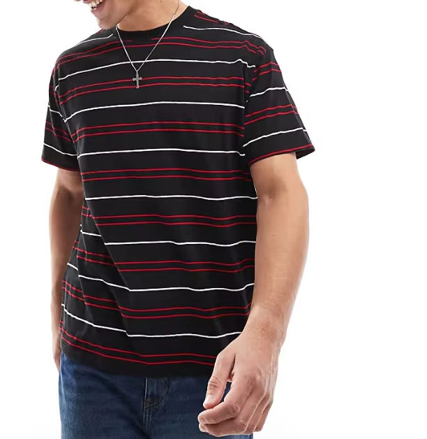 ผลิตเสื้อยืดคอกลมผ้าฝ้าย 100% คุณภาพสูง ทรงหลวม สไตล์ลำลอง ลายทาง สำหรับผู้ชาย ตามสั่ง