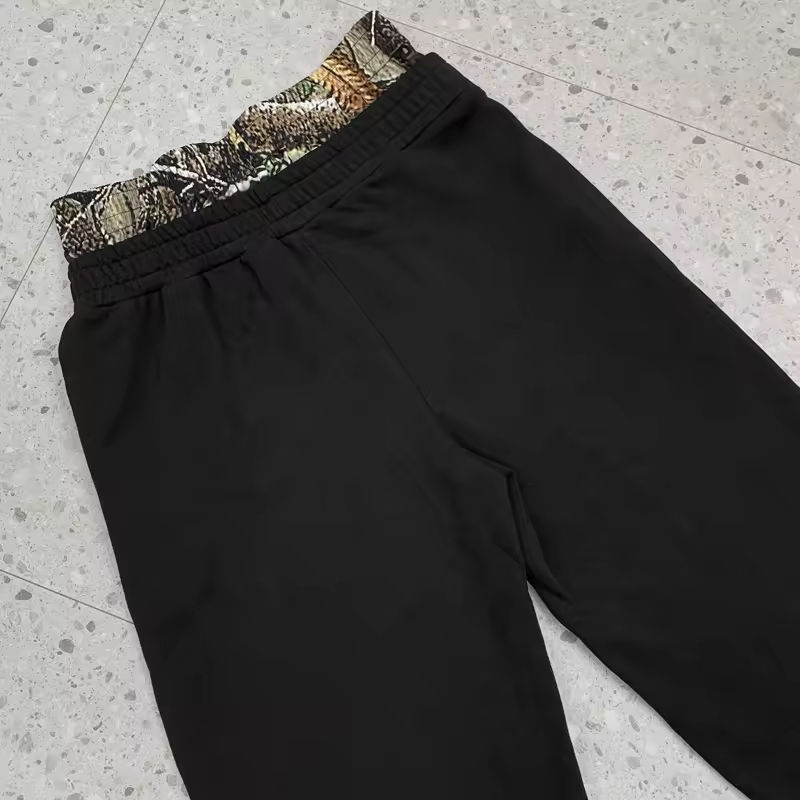 ผลิตกางเกงผู้ชายผ้าฝ้ายเฟรนช์เทอร์รี่ 420GSM พิมพ์ลายทั้งตัว เอวสองชั้น ทรงหลวม สกรีนโลโก้ตามสั่ง