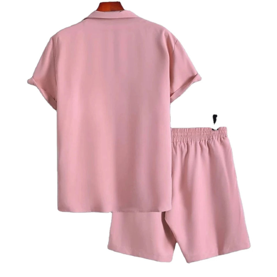 ผลิตชุดเซ็ตเสื้อเชิ้ตและกางเกงขาสั้นผู้ชายไซส์ใหญ่พิเศษ สกรีนโลโก้ตามสั่ง ขายส่ง ชุดออกกำลังกาย ชุดลำลองฤดูร้อน แบบติดกระดุม สำหรับผู้ชาย