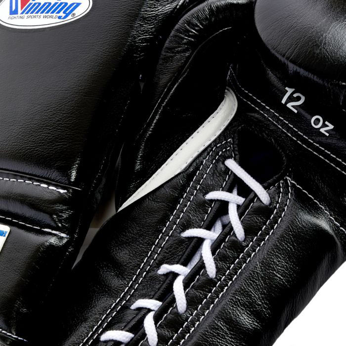 ถุงมือชกมวยหนังวัวแบบผูกเชือกสำหรับผู้ใหญ่ถุงมือชกมวยสีดำสำหรับแข่งขันแข่งขันแบบกำหนดเอง