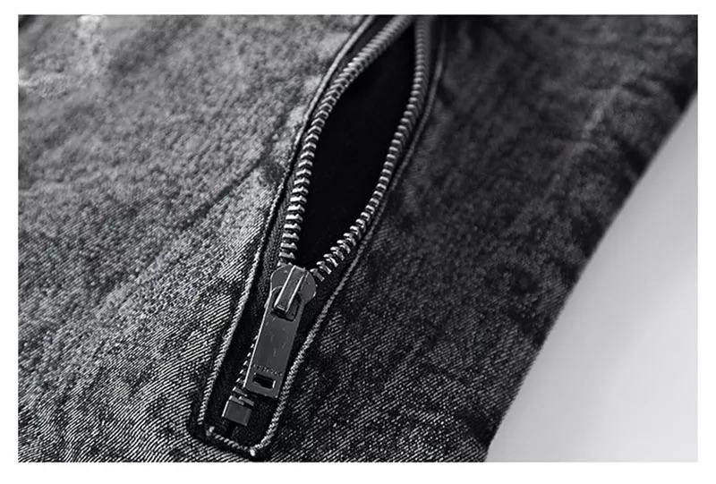 เสื้อแจ็คเก็ตยีนส์ผู้ชายสไตล์วินเทจ Y2K ลายปะติดแถบลายทาง ปักลาย ซิป แขนยาว