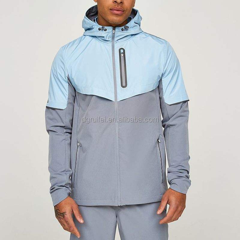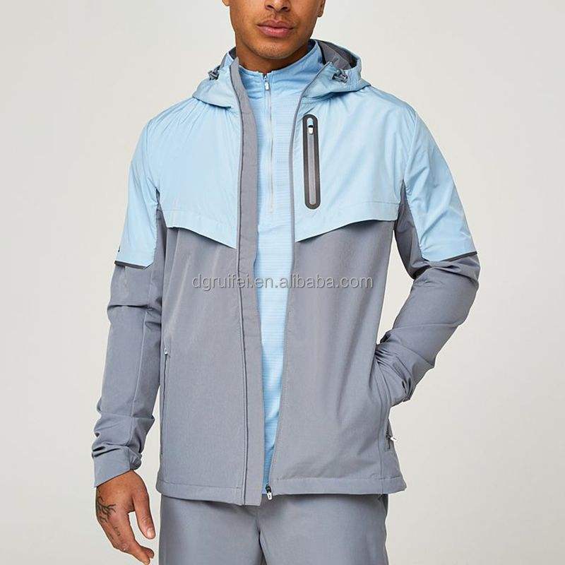 แจ็กเก็ตกันฝนสำหรับผู้ชายเสื้อกันลมซิปเต็มตัวทำจากไนลอนโพลีเอสเตอร์กันน้ำออกแบบได้ตามต้องการ