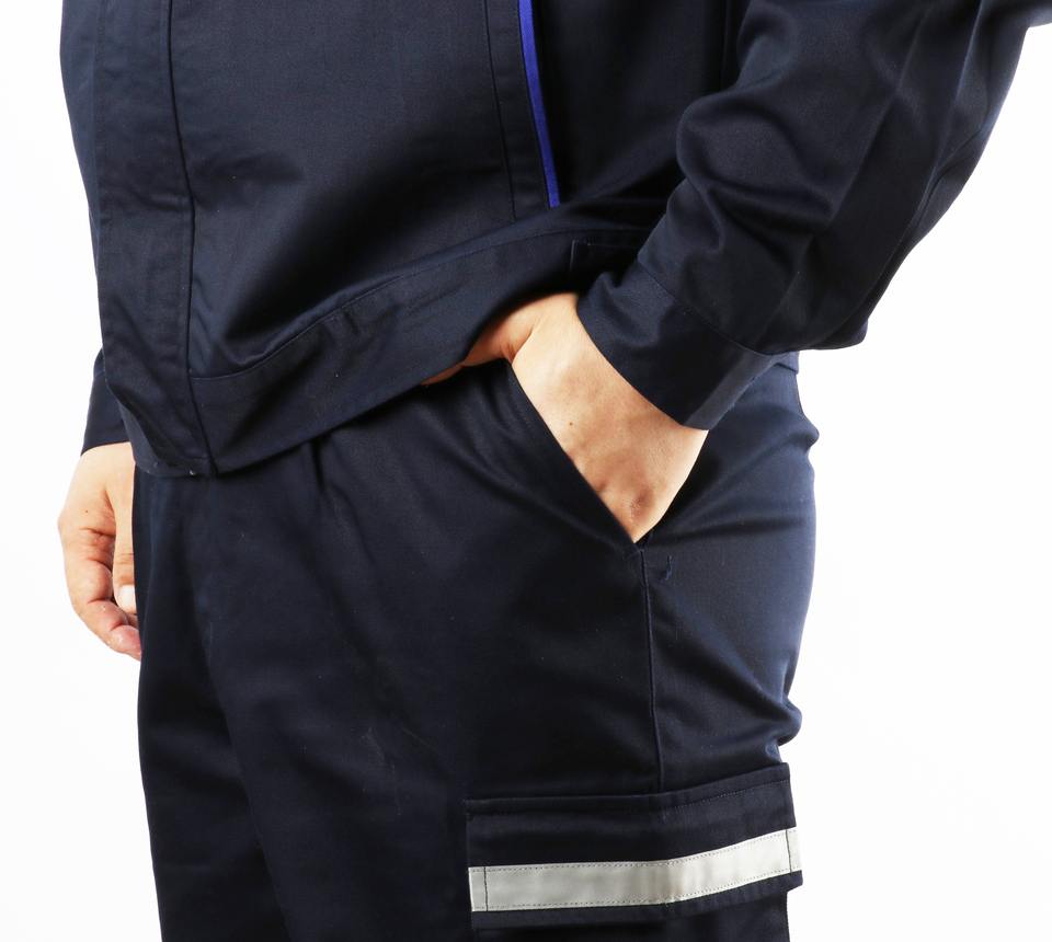 ผลิตชุดทำงานผ้าคอตตอนผสมโพลีเอสเตอร์ขนาดใหญ่แบบกำหนดเอง ชุดทำงานแบบมีแถบสะท้อนแสง ชุดเอี๊ยมสำหรับผู้ชาย ระบายอากาศได้ดี