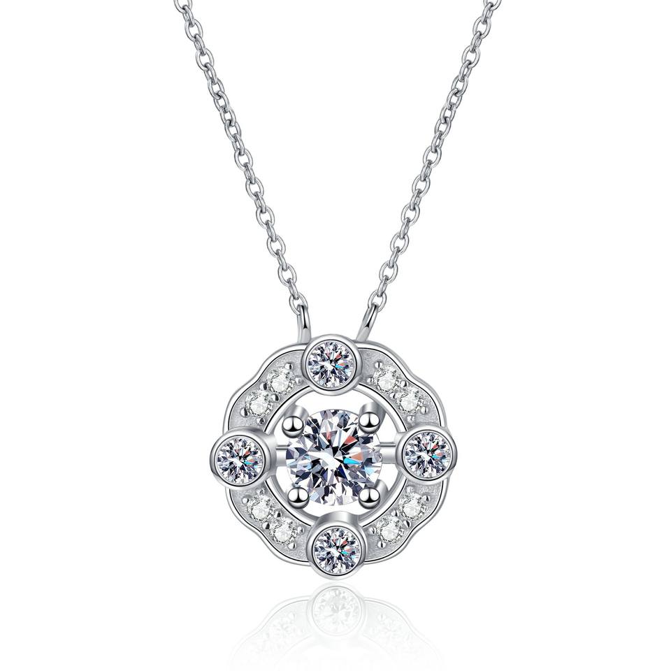 925จี้เพชรโมอิสทรงกลมสำหรับผู้หญิงทำจากเงินสเตอลิงเครื่องประดับสร้อยคองานแต่งงานงานตามสั่งผลิต