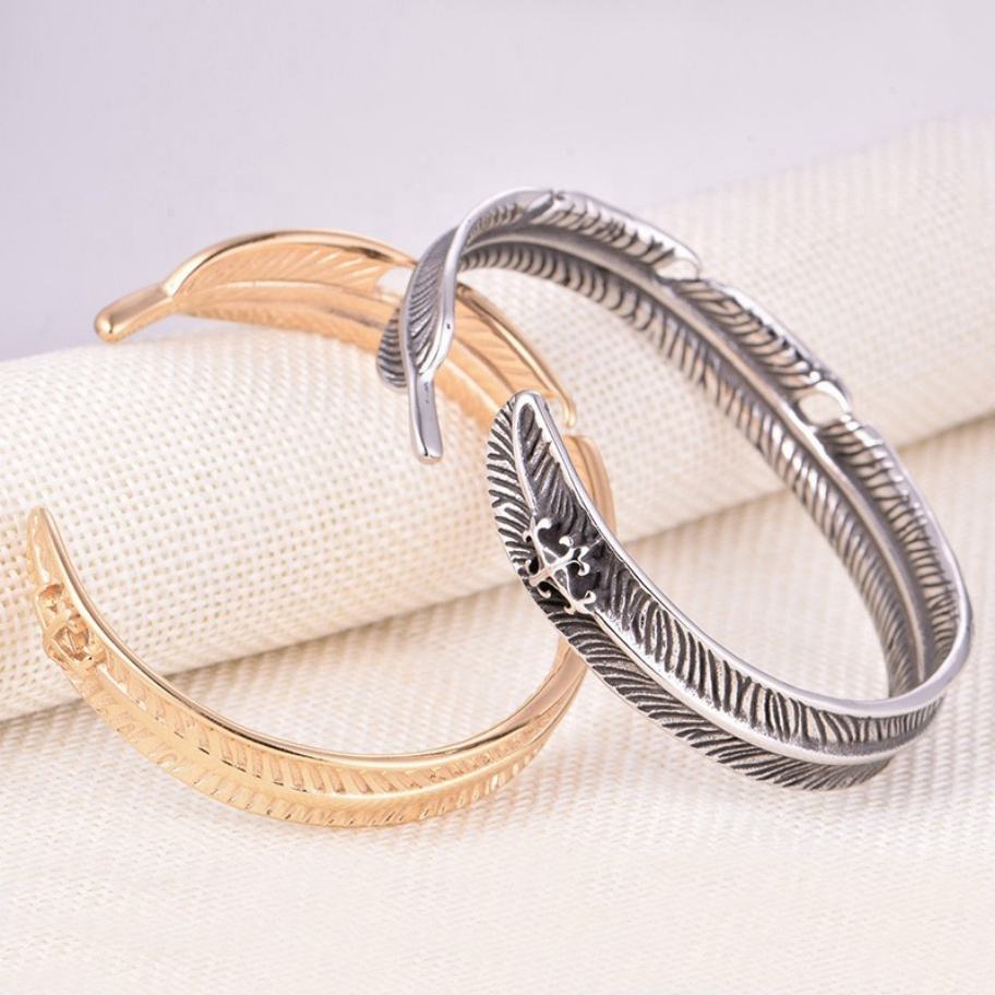 กำไลข้อมือลายใบไม้สำหรับผู้หญิงผู้ชาย ทำจากสแตนเลส 316L พร้อมจี้ตกแต่ง กำไลดีไซน์สวย กำไลขายดี