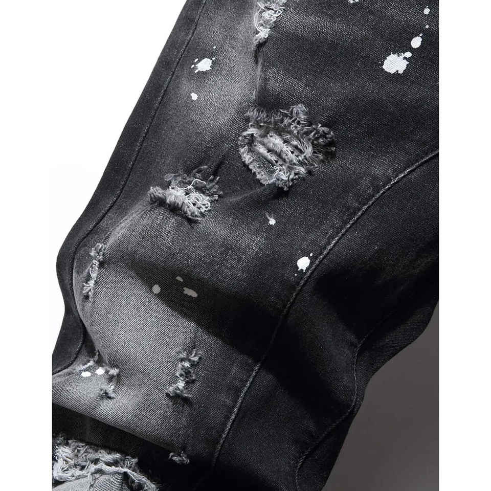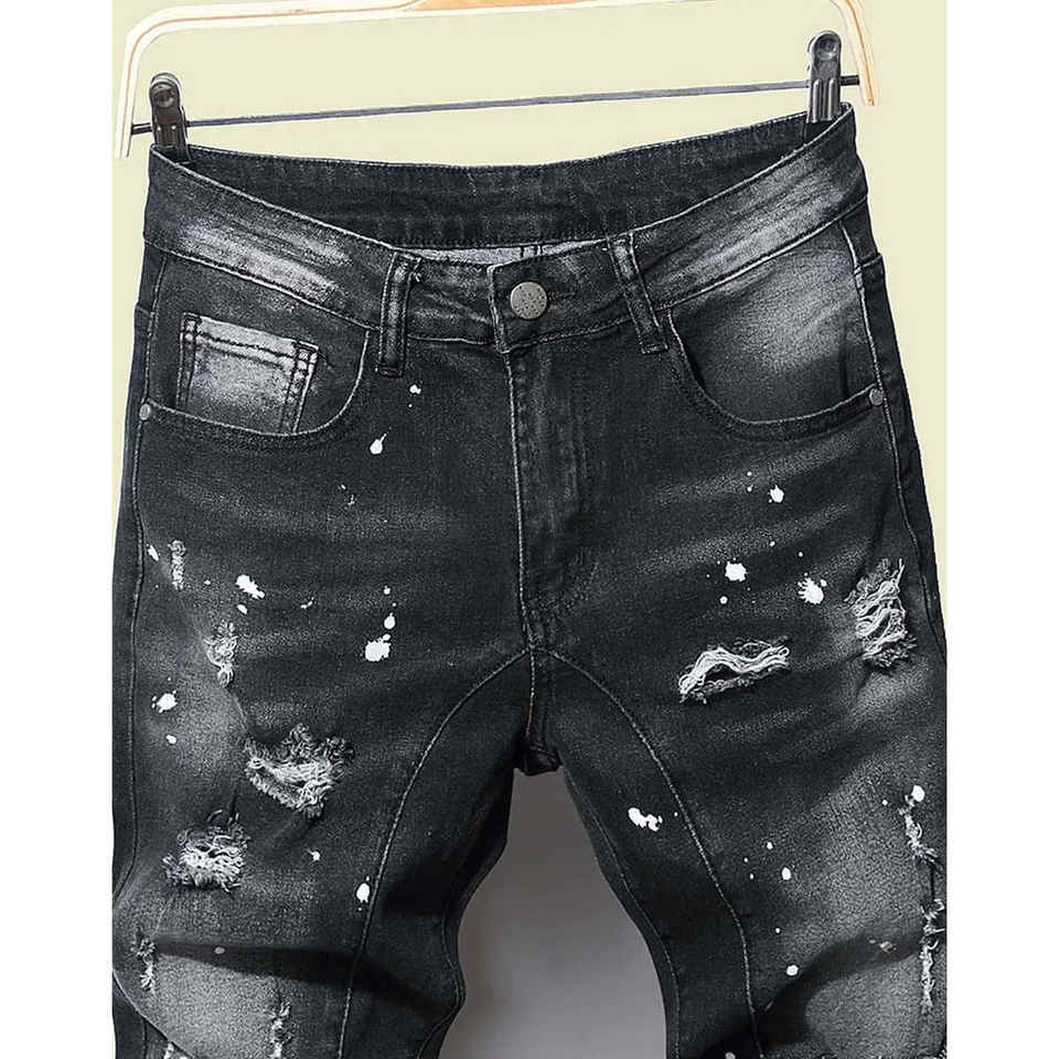 กางเกงยีนส์ผ้ายืดขาดๆสำหรับผู้ชายกางเกงยีนส์ขาดทรงสลิมฟิตพร้อมสีและโลโก้ตามสั่ง