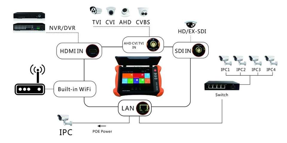 เครื่องทดสอบกล้องวงจรปิด IP แบบมืออาชีพ รองรับ 4K H.265 ฟังก์ชั่นครบครัน AHD CVI TVI SDI TDR รุ่น Pro