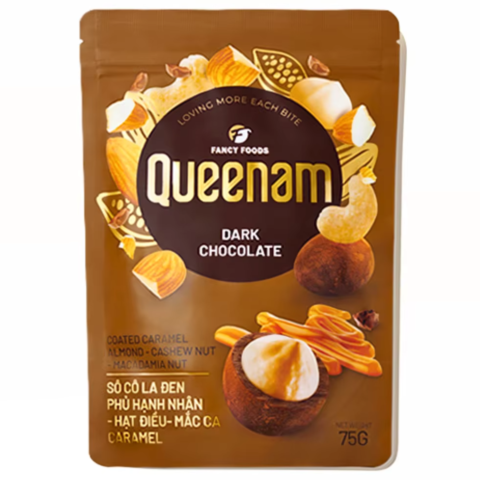 ผลิตและจัดส่งช็อกโกแลตดรากีแบบเร็ว OEM/ODM ฮาลาล ช็อกโกแลตดำเคลือบคาราเมล อัลมอนด์ เม็ดมะม่วงหิมพานต์ แมคคาเดเมีย นัท 75 กรัม