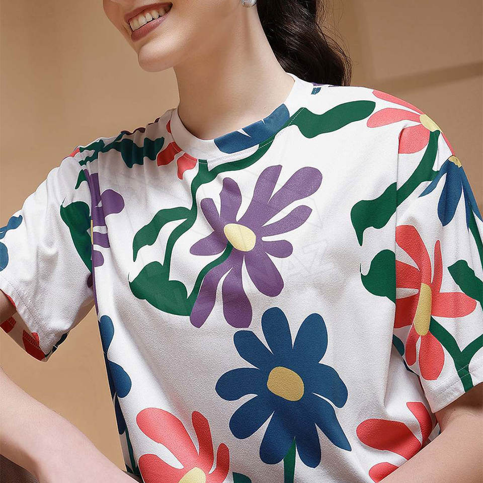 ผลิตซัพพลายเสื้อยืดหญิงผู้หญิงเสื้อทีระบายอากาศตัดติดตั้งกราฟิกทีฝ้ายพืชผู้หญิงเสื้อยืด