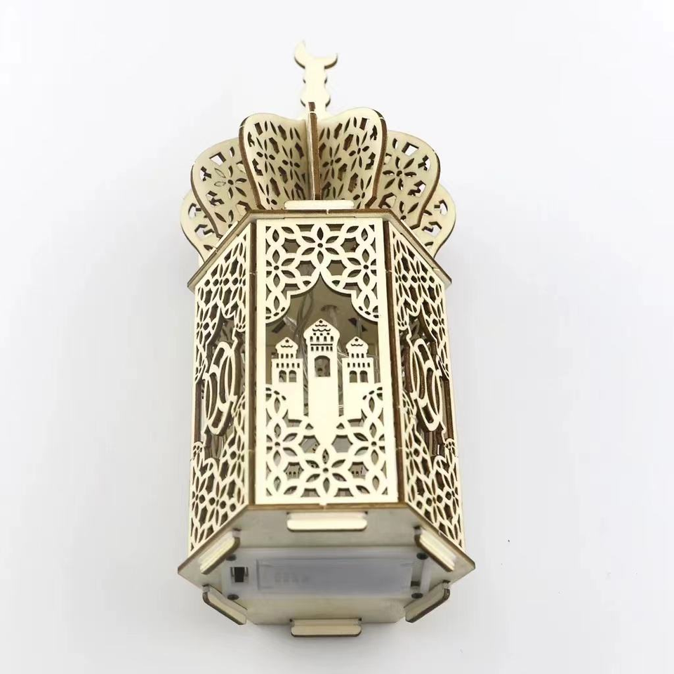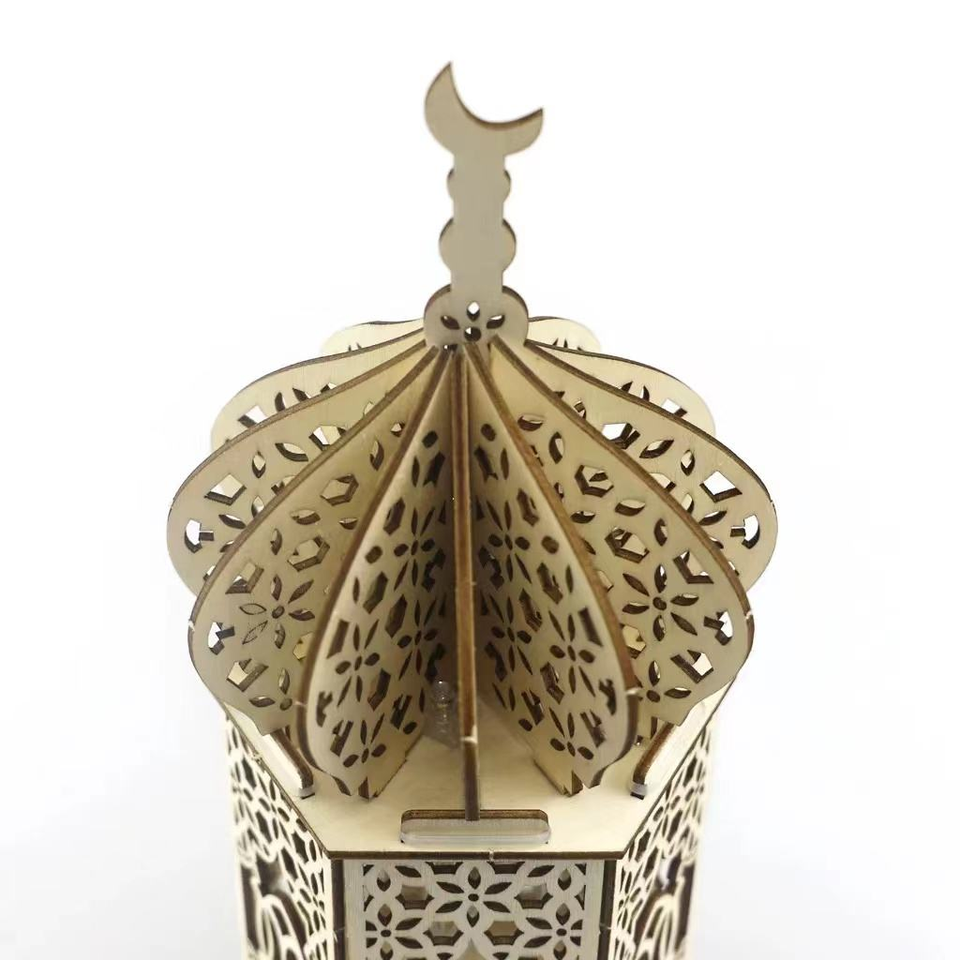 ผลิตและขายส่งของตกแต่งรูปประภาคารไม้แบบเป็นมิตรกับสิ่งแวดล้อมสำหรับเดือนรอมฎอน ของขวัญงานฝีมือที่ปรับแต่งได้ ของตกแต่งวันหยุดสุดสร้างสรรค์พร้อมเทียน