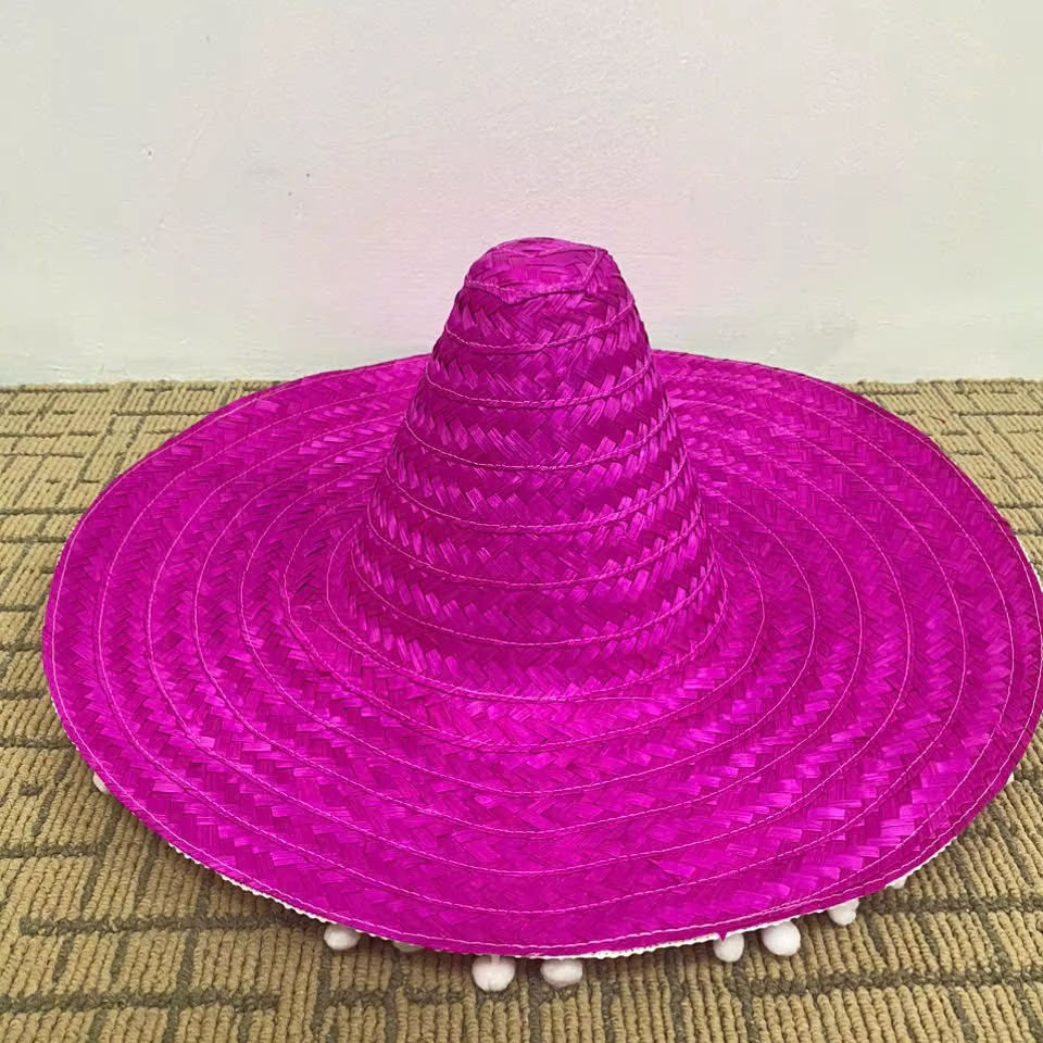 ผลิตหมวกสานปักมือแบบ OEM สไตล์เม็กซิกัน ปีกกว้าง สำหรับงานปาร์ตี้แฟนซี งานเทศกาล ซอมเบรโร