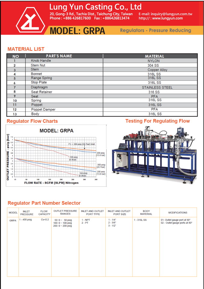 LYC ผลิตเครื่องควบคุมแรงดันแก๊ส LPG แบบแรงดันสูง พร้อมมิเตอร์วัด ผลิตจากสแตนเลส 2000PSI ได้รับการรับรองตามมาตรฐาน ASME B31.3