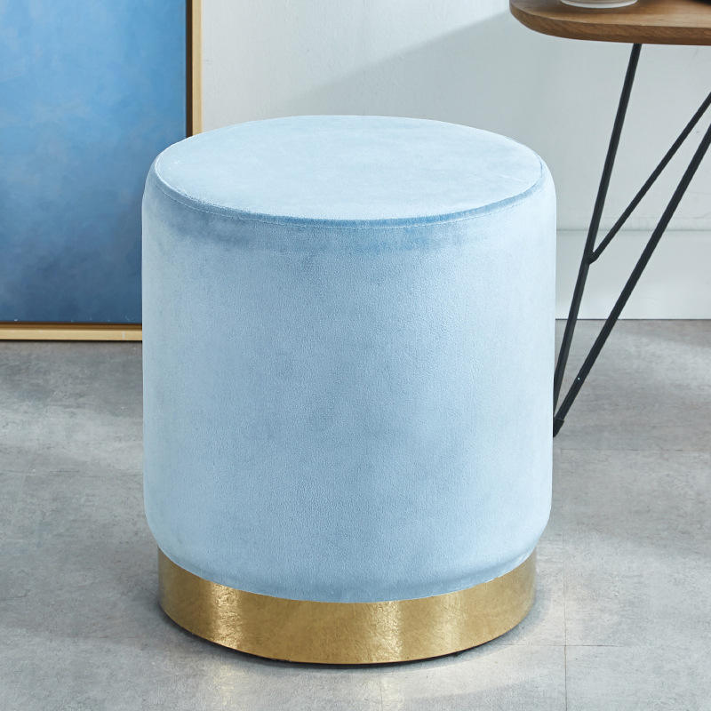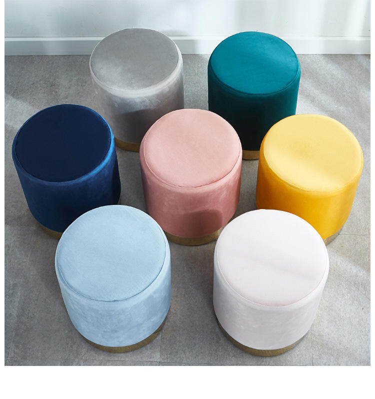 การผลิตเบาะที่นั่งที่ทันสมัยม้านั่งเก็บเท้าในร่มบ้านหรูหราห้องนอนรอบออตโตมันกำมะหยี่ฐานโลหะออตโตมัน Pouf