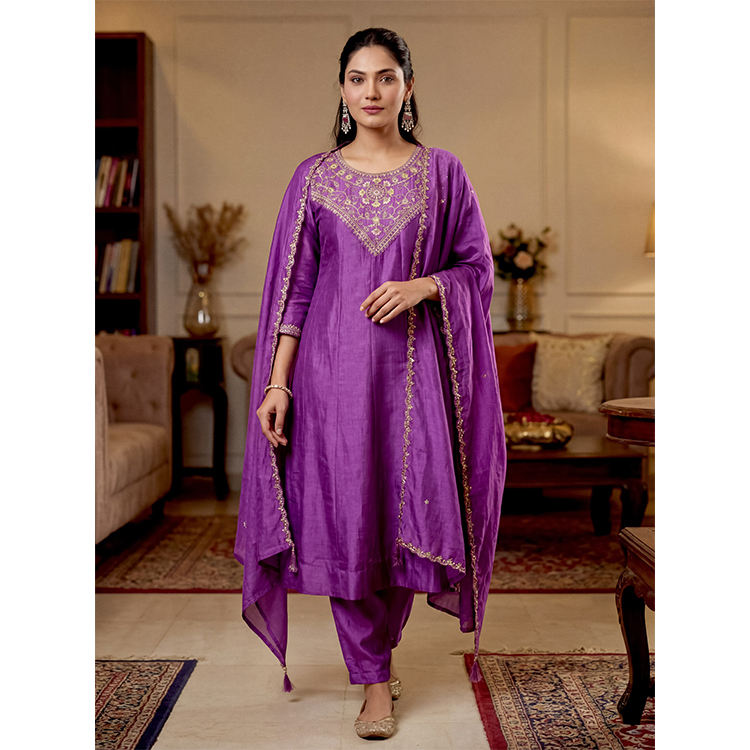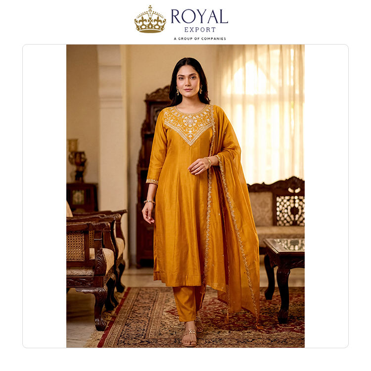 ผลิตในอินเดีย ชุดคุर्ติผ้าไหมวิชิตร้าแบบดั้งเดิมสไตล์คลาสสิกขายดี พร้อมงานปักและดีไซน์ทรงบาน