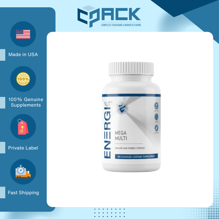 ผลิตในสหรัฐอเมริกา คุณภาพสูง รับผลิตแบบ OEM พร้อมติดฉลากส่วนตัว อาหารเสริมเมก้ามัลติ สำหรับผู้ใหญ่ บรรจุ 90 แคปซูล จำหน่ายแล้ววันนี้