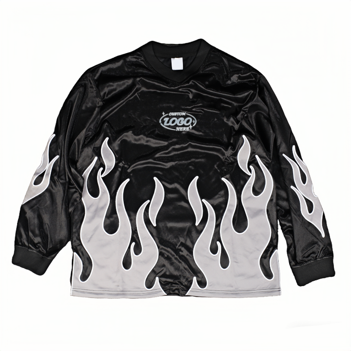 เสื้อเจอร์ซีย์แขนยาวผู้ชาย คอวี แฟชั่นกีฬา พิมพ์ลายแบบซับลิเมชั่น ผลิตจากโพลีเอสเตอร์ 100% รับสั่งทำ