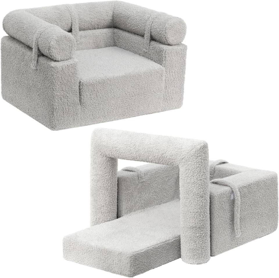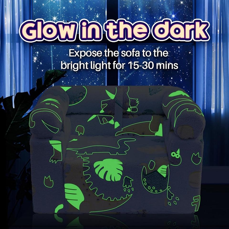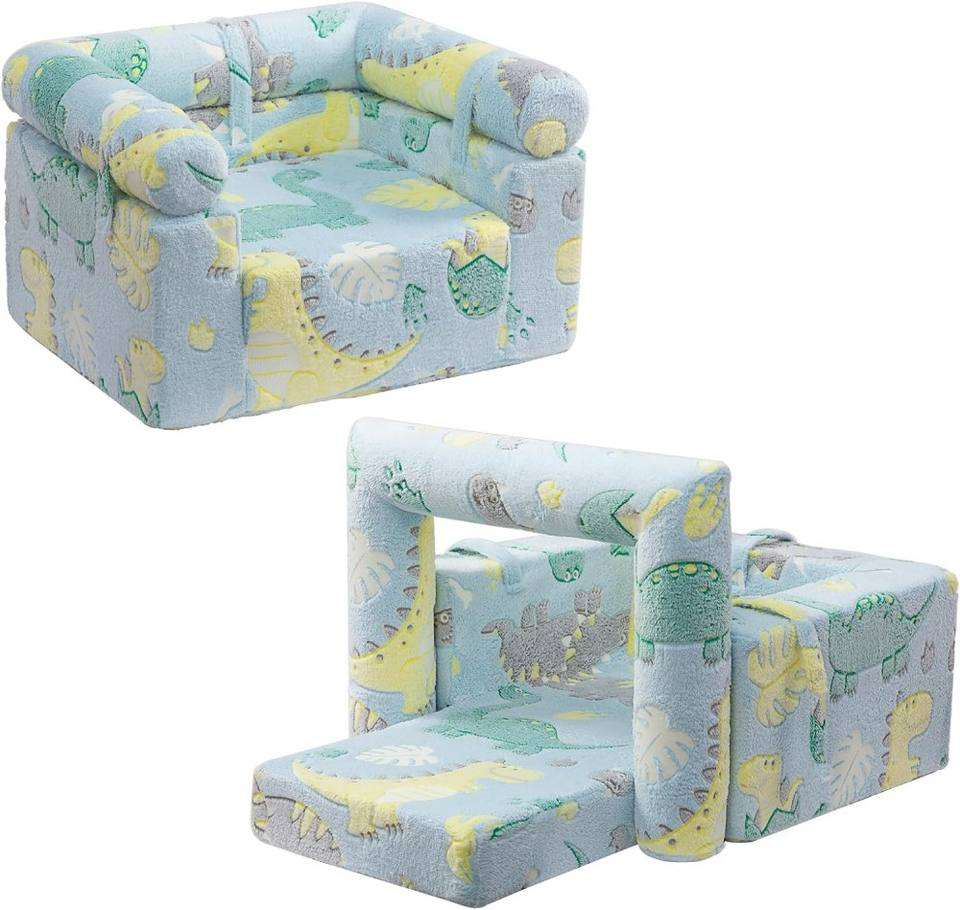 โซฟาเด็กแบบถอดประกอบได้ 2-in-1 ยี่ห้อ Manufacturer พร้อมพนักพิงแบบพลิกได้ เก้าอี้อ่านหนังสือสำหรับเด็กเล็ก หุ้มด้วยผ้ากำมะหยี่เรืองแสงในที่มืด