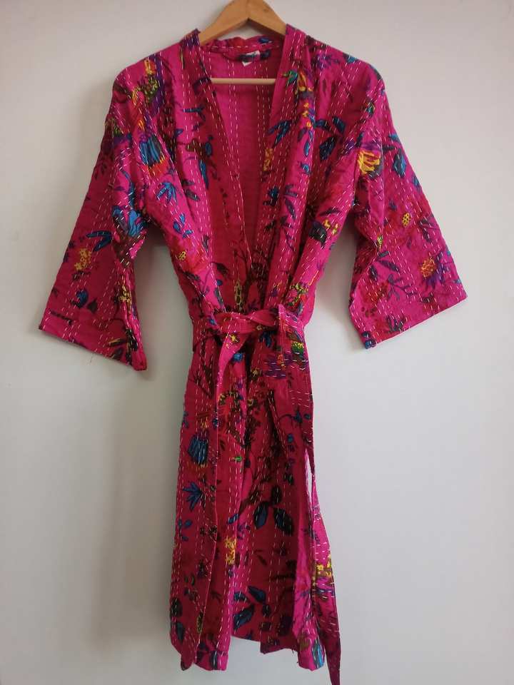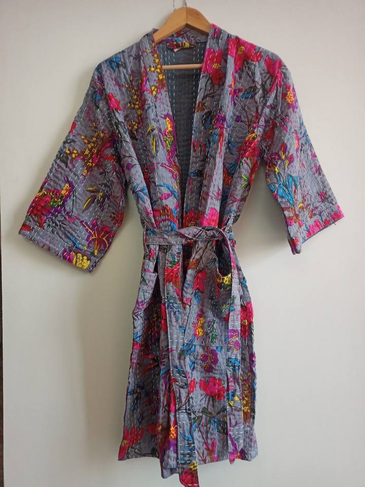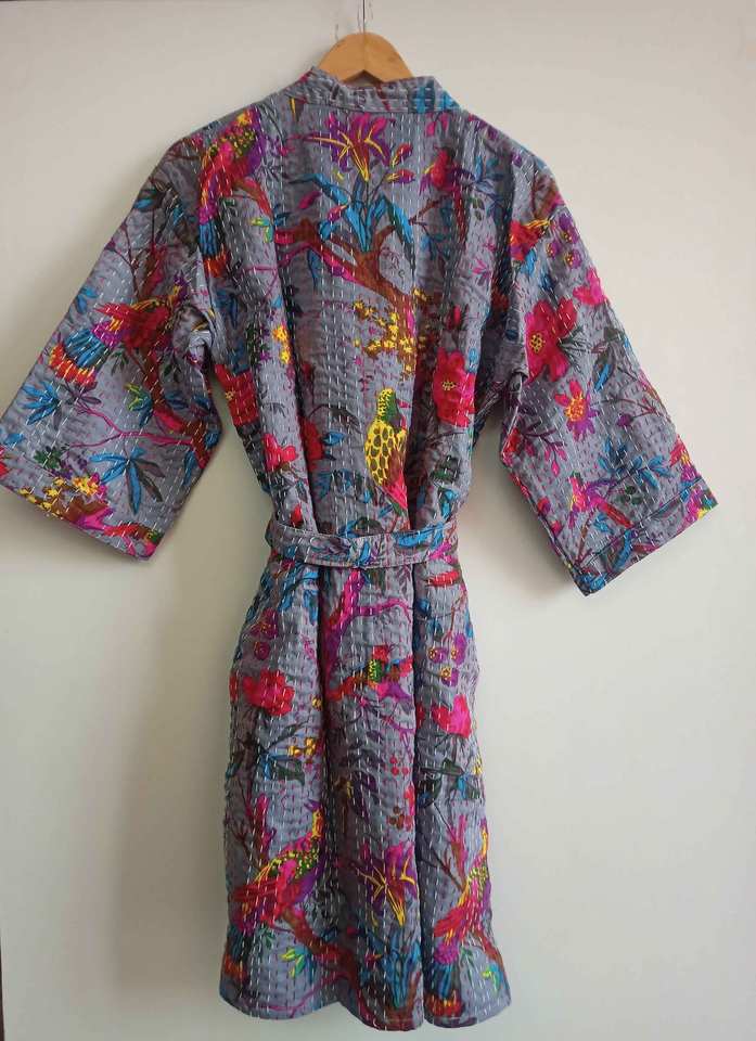 เสื้อคลุมกิโมโนผ้าฝ้ายสำหรับผู้หญิง,ชุดคลุมอาบน้ำชุดชายหาดชุดเดรสเซ็กซี่ชุดคลุมทำจากผ้าคอตตอนชาวอินเดีย