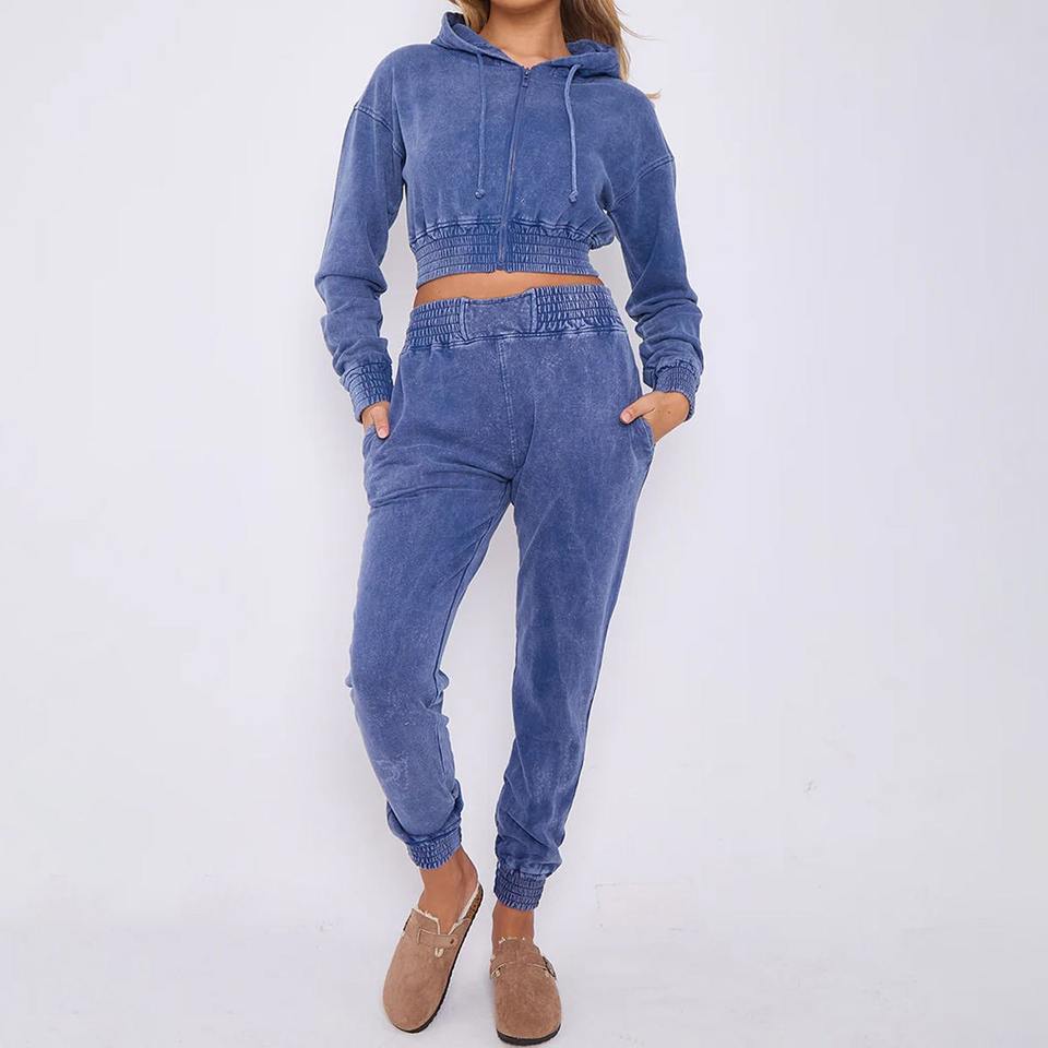 ชุดวอร์มสำหรับผู้หญิงชุดวอร์มกางเกงครอปแบบครอปแอซิดสำหรับผู้หญิง