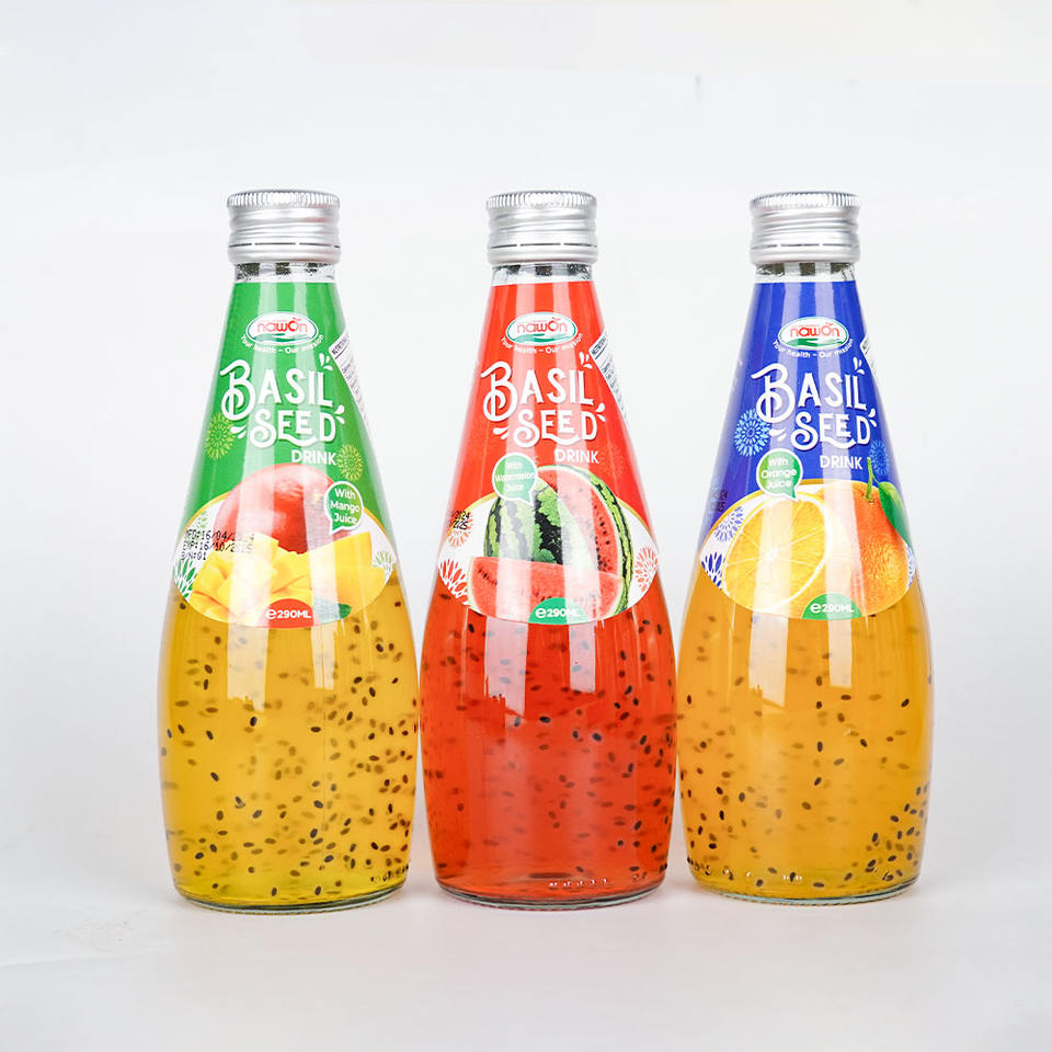 น้ำเมล็ดโหระพาบรรจุขวดแก้ว 300 มล. ผลิตโดยโรงงานผลิตเครื่องดื่มโหระพา รับผลิตแบบ OEM/ODM พร้อมตัวอย่างฟรีและบริการติดฉลากสินค้า