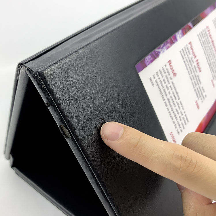 ป้ายเมนูร้านอาหารแบบมีไฟ LED ปกหนังเทียมสีดำ พร้อมไฟ LED 3 ดวง แสดงผลแบบดิจิทัล