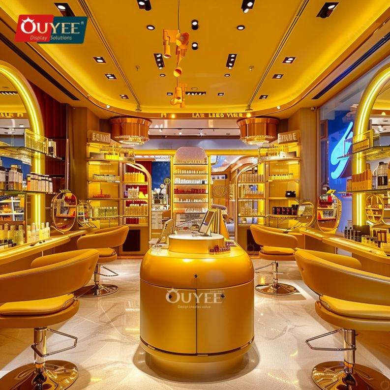 โต๊ะวางเครื่องสำอางที่ตั้งแสดงน้ำหอมแบบหินชนวนติดผนังชั้นวางของร้านเสริมความงาม