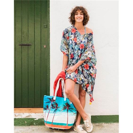 Product Name:Floral Printed 100% Cotton Kaftan Beach Cover-up