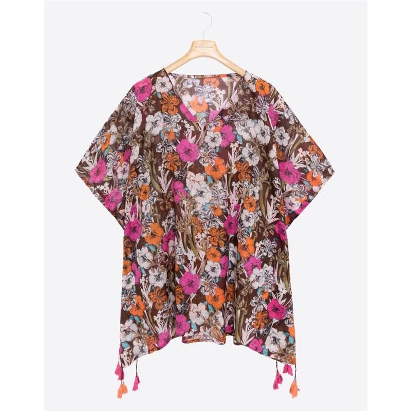 Floral Printed 100% Cotton Kaftan Beach Cover-up
