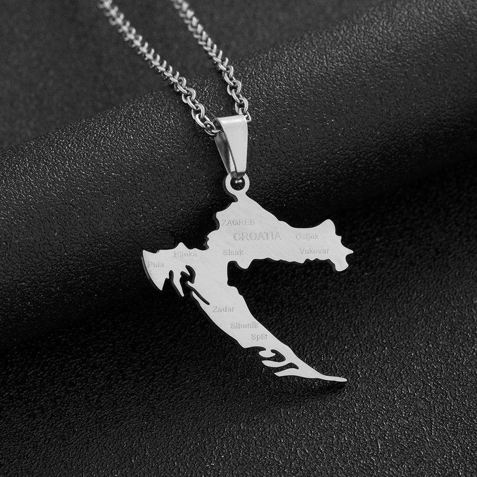 Manufacturer Croatia Map Chain Necklaces Stainless Steel Silver 18K Gold Plated Croatia National Flag Map Pendant Necklace