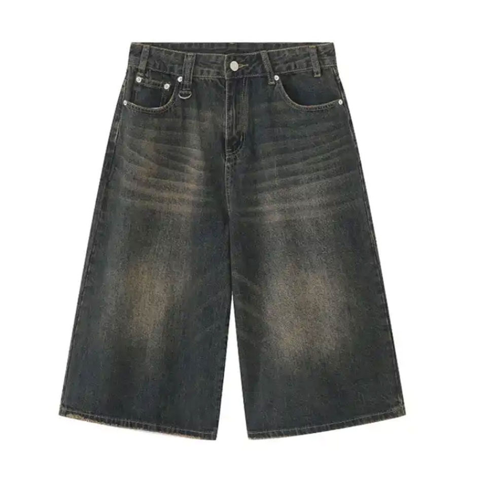 กางเกงยีนส์ขาสั้นผู้ชายทรงแบ็กกี้ แต่งคริสตัล ล้างสีแบบวินเทจ ขากางเกงสองชั้น ผ้าโพลีเอสเตอร์ 100% สั่งทำจากโรงงาน