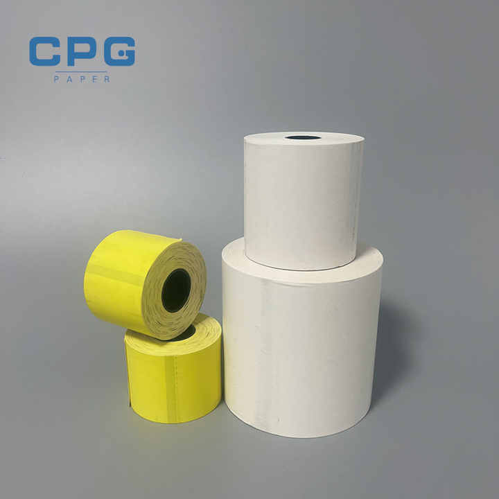 กระดาษใบเสร็จรับเงินแบบกำหนดเองจากผู้ผลิต ขนาด 57x50 มม. ปราศจากสาร BPA ความหนา 55 แกรม สำหรับเครื่องบันทึกเงินสดความไวสูง ขนาด 80 มม. แบบม้วน