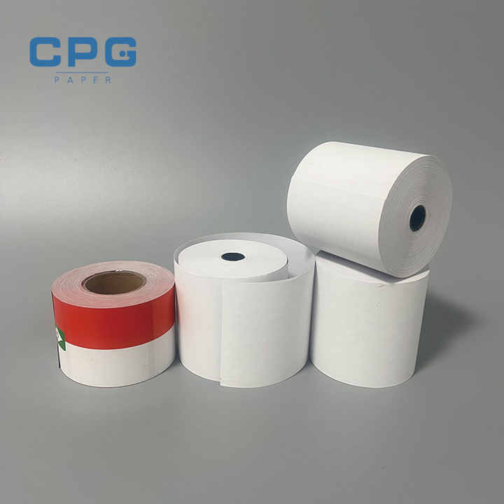 กระดาษม้วนความร้อนแบบกำหนดเองจากผู้ผลิต ขนาด 80x70 มม. 80x80 มม. 55 แกรม ความสว่างสูง สำหรับเครื่องพิมพ์ร้านอาหาร เครื่องบันทึกเงินสด ใบเสร็จรับเงิน