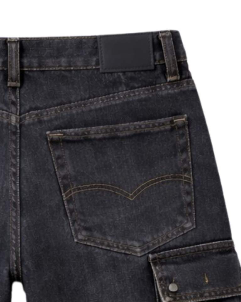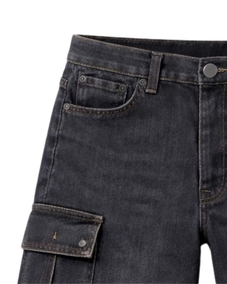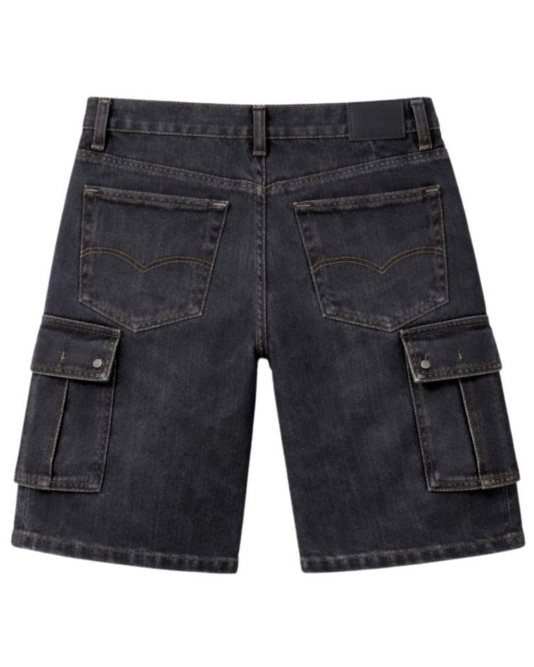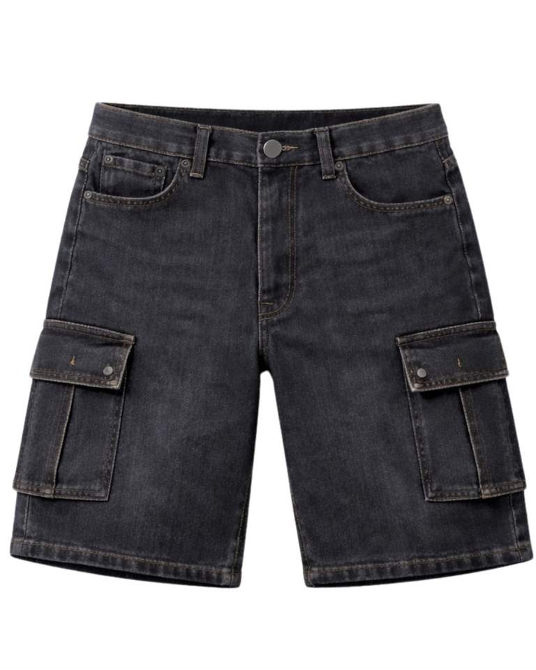 กางเกงยีนส์คาร์โก้สีดำสั่งทำพิเศษสำหรับผู้ชาย กางเกงยีนส์ขาสั้นหลายกระเป๋า ทรงปกติ สวมใส่สบายๆ สไตล์สตรีทแวร์ เหมาะสำหรับใส่ในฤดูร้อน