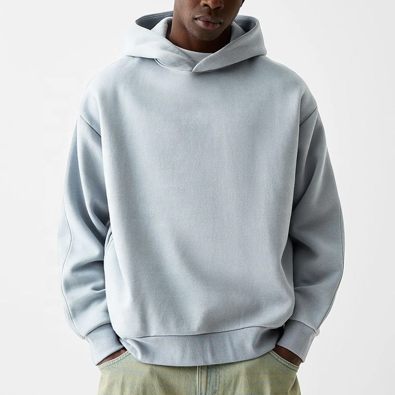 เสื้อฮู้ดผ้าฝ้ายเทอร์รี่ผ้าฟลีซสำหรับผู้ชายเสื้อครอปแบบบ็อกซี่