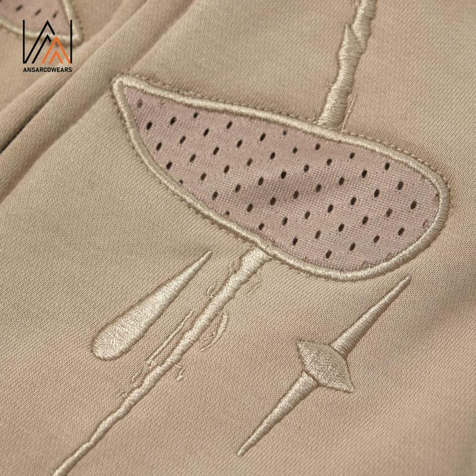 เสื้อฮู้ดผู้ชายแบบมีฮู้ดใส่หน้ากากแบบเต็มหน้าผ้าล้างด้วยกรดแบบปักลาย